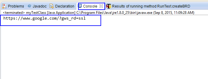 Click save, then right click on current class >> choose “Run As” >> “Java Application” and observe the result. It will open FireFox browser, maximize windows, then access to google site, get current url and print it to elcipse console windows as the picture below: